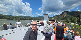 After our abbey visit, instead of taking the bus, we hopped on a boat cruise from Melk to Krems on our way to Vienna. This 24-mile stretch of the Danube is one of the most scenic river valleys in Europe. The 1.5-hour ride was relaxing, with food and drinks available, and our guide even saved us a front-row spot to enjoy the views. We passed charming wine villages, castles, vineyards, and other cruise ships—watching it all drift by from the water made it even more special.